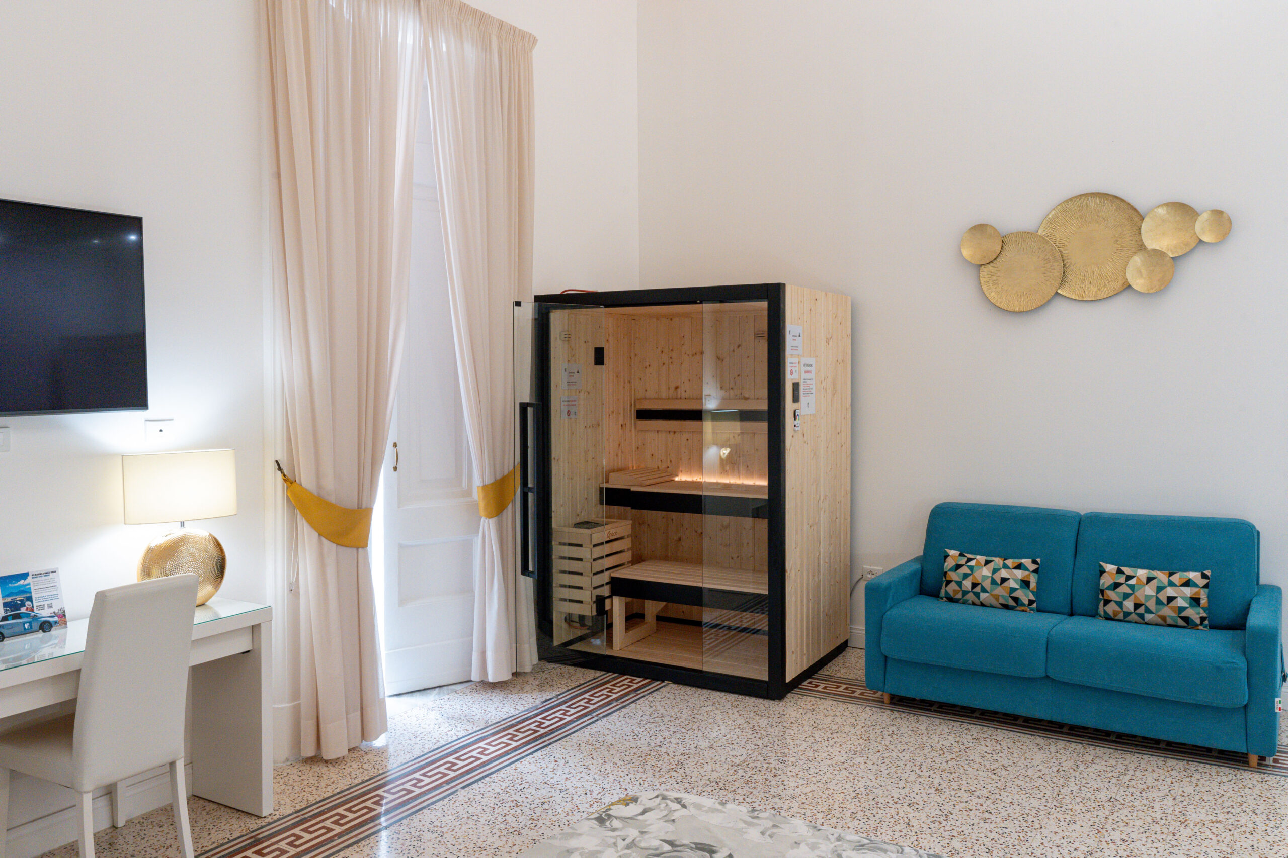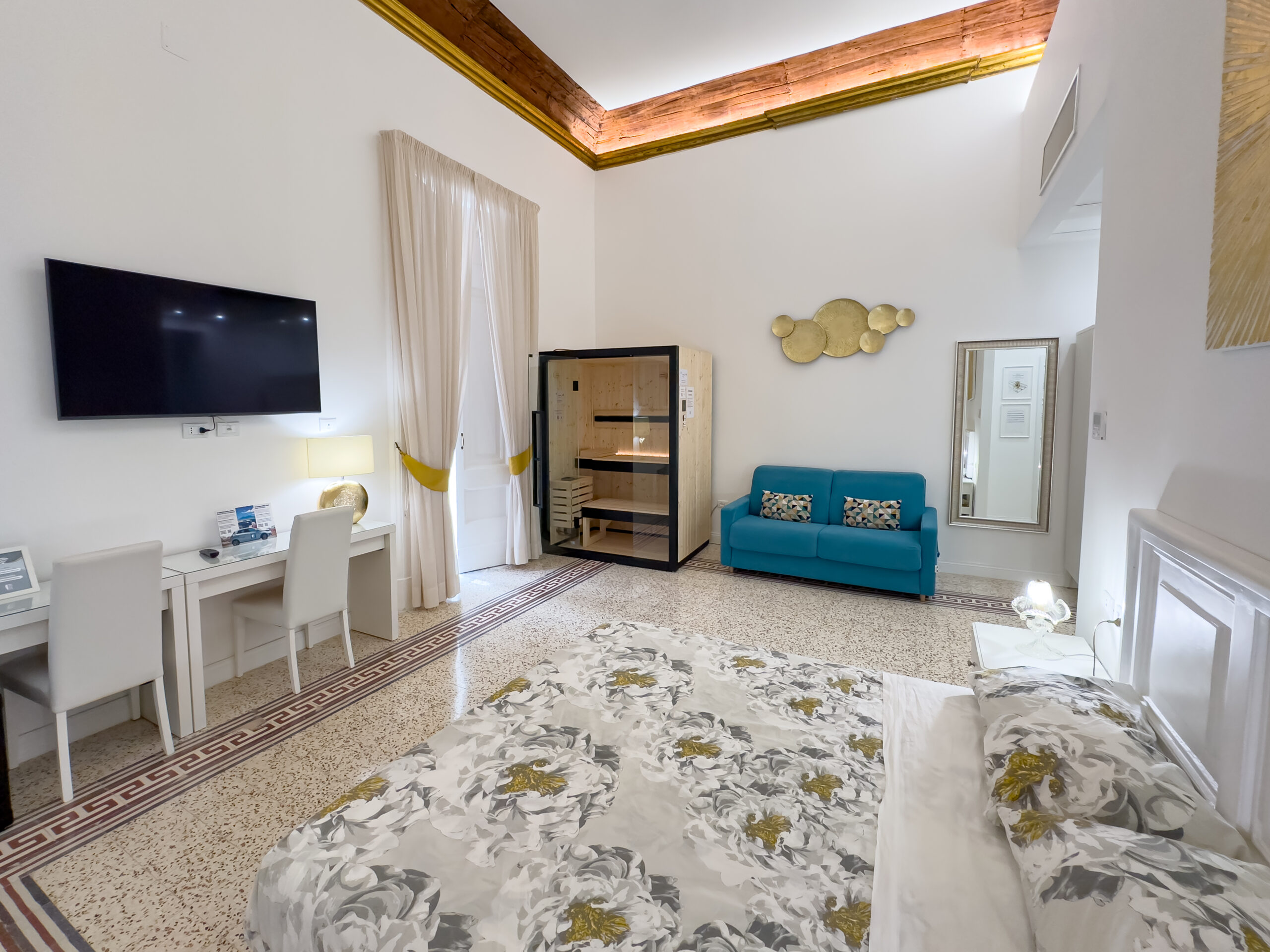 Gli elementi storici, come gli affreschi e i pavimenti in marmo, sono stati restaurati con cura, regalando agli ospiti un’atmosfera esclusiva; ma il vero punto di forza di questo b&b con vasca idromassaggio a Napoli è l’attenzione al benessere: le suite infatti offrono spaziose Jacuzzi e saune private, mentre le altre camere sono dotate di moderne docce idromassaggio, perfette per un momento di relax dopo una giornata alla scoperta della città. Ogni dettaglio è pensato per garantire un soggiorno indimenticabile: balconi con vista, aria condizionata, smart TV, Wi-Fi gratuito, minibar e bollitore, per un’esperienza su misura per ogni ospite. Queste sono alcune delle motivazioni per le quali, se sei interessato a soggiornare presso un b&b con vasca idromassaggio a Napoli, non devi fare altro che recarti presso 1811 Residenza Storica.