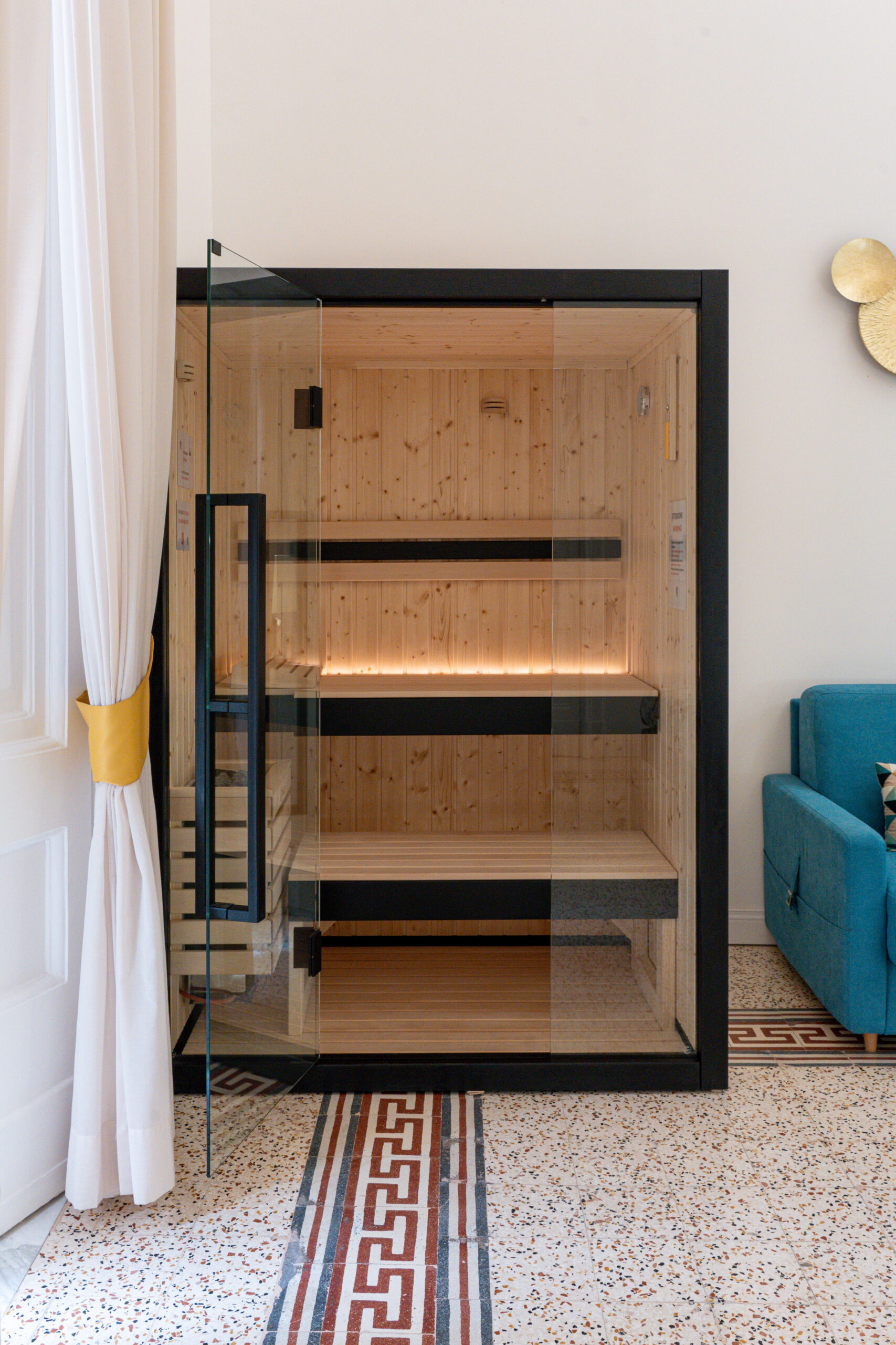 Gli ambienti sono dotati di tutti i comfort moderni, tra cui aria condizionata, smart TV, Wi-Fi, mini frigo, bollitore e comodi balconi, garantendo così un soggiorno piacevole e rilassante. Le suite, pensate per il massimo del benessere, offrono moderne Jacuzzi e sauna, mentre tutte le camere sono dotate di docce idromassaggio per un’esperienza di puro relax.